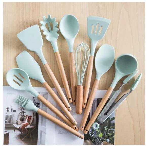 11 כלי בישול חיוניים בכל מטבח, עשויים סיליקון עמיד וידיות עץ נגישות בתוספת כלי אחסון תואם שירכז וינגיש עבורכם את הכלים בדרך היעילה והמעוצבת ביותר.